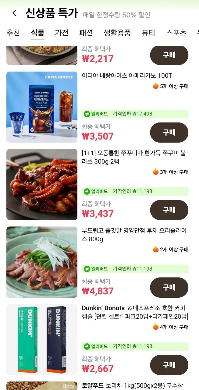 - 대부분의 카테고리 제품 혜택 적용 (식품, 전자기기, 생활용품, 화장품 등 다양)